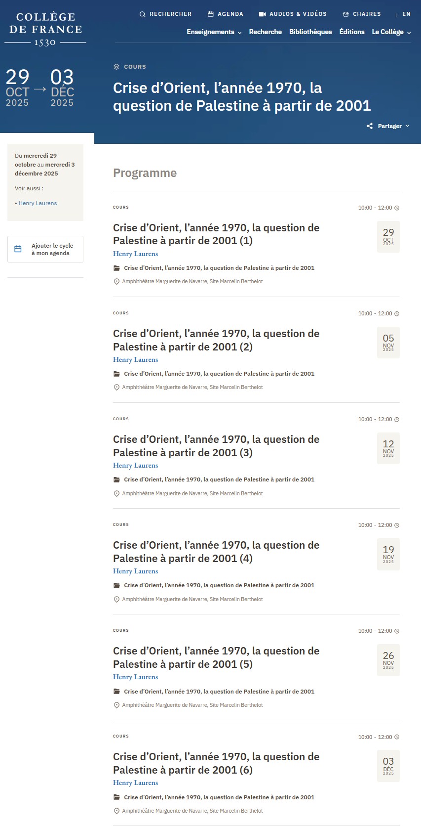 Crise d’Orient, l’année 1970, la question de Palestine à partir de 2001 (3). Collège de France